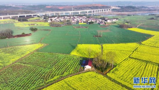 建设中的宣绩高铁与周围的农田相互映衬
